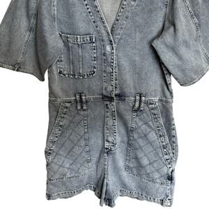 Driftwood NWOT Quilted Romper Belted Waist V Neck Denim Acid Wash Size Small