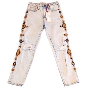 Driftwood NWT Gizelle Geometric Embroidered Straight Jeans Ladies Size 26