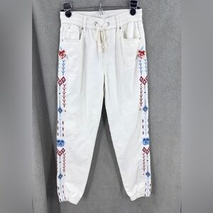 Driftwood Rivier Embroidered Joggers Womens XS Southwest Tribal Pants Jeans Boho
