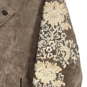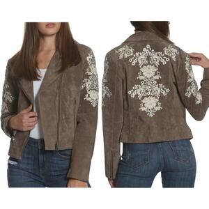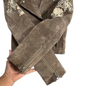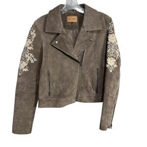 Driftwood Suede Leather Moto Jacket Embroidered Beaded Sz S