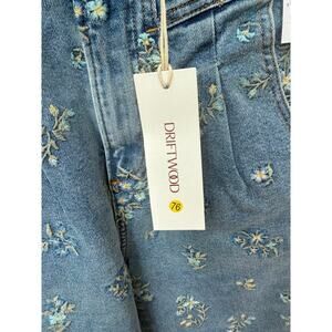 Driftwood Women's Light Wash Floral Pleated Wide Leg Jeans Size 24