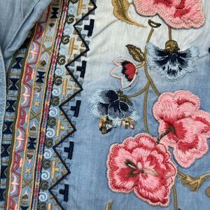 Driftwood embroidered Detty cap sleeve chambray boho western Top XL