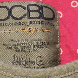 Color army green with reforced sleeves and neckline. In very good condition. Boys small. Made 100% cotton.