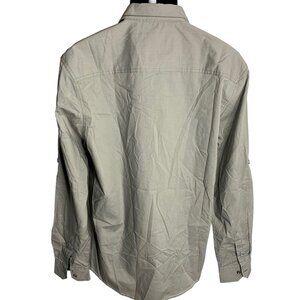 Drill Clothing Roll Tab Sleeve Button Up Shirt L Grey Chest Pockets Collared