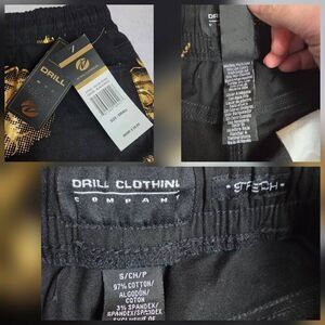 Drill Gold on Black Rose Flower Floral Statement Drawstring Shorts Sz. S NWT