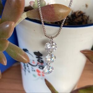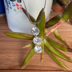 Drill Drop Swarovski Crystal Necklace 3 Cascading Crystals