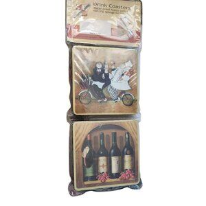 Drink Coasters Wine Design set of 4 Waterproof Non slip sponge backing Dishwashe