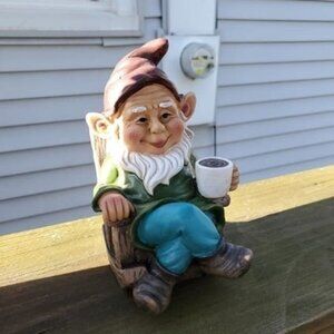 Drinking Coffee Garden Gnome Statue Decoration 7.3" Figurine Ornament