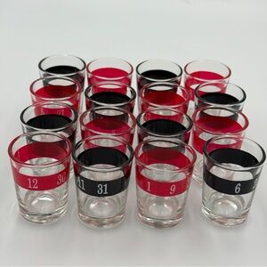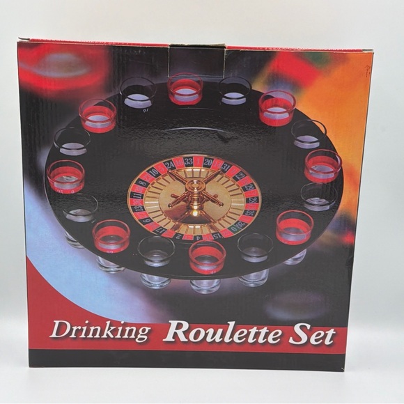Used once. One of the red shot glasses has a chip shown in the photo. Some scratch marks on the tray. The Roulette Drinking Game is a fun and entertaining novelty for parties. Made of durable plastic, this game includes 16 shot glasses that spin like a roulette wheel, allowing guests to take shots based on where the glass lands. Perfect for those who enjoy a bit of gambling and a good time, this unique entertainment piece is sure to liven up any gathering.