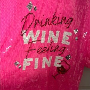 “Drinking Wine and Feeling Fine” Pink Sequin Women's Top