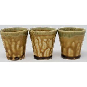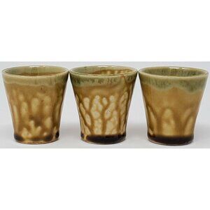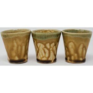 Drip Glaze Ceramic Shot Glasses Set of 3 Gold Yellow Japan 1.75" tall Vintage
