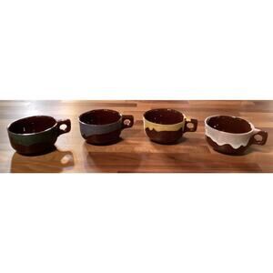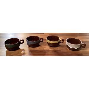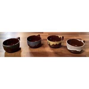 Drip Glaze Japan Stoneware Oven to Table Brown Soup Bowls with Handle set of 4