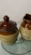Drip Glaze Pottery Cream and Sugar Bowl 3Pc Set Tri-Color Brown Tan Stoneware