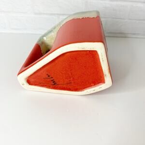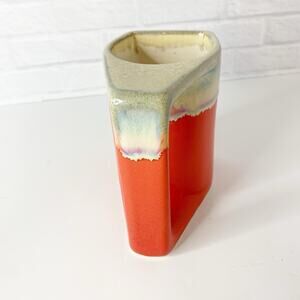 Drip Glazed Stoneware Square Coffee Mug Signed Candy Apple Orange Stacking.