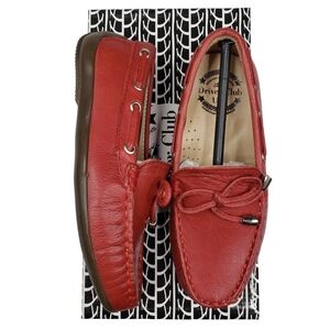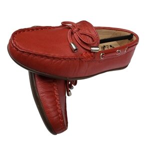 Brand new in box! Red, genuine leather upper. Slip on style. Casual and neutral. Preppy, Americana, nautical design.