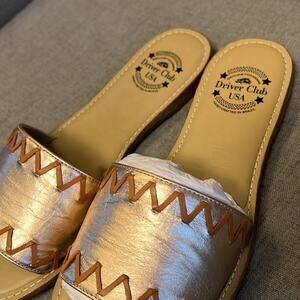 Drivers club Malibu tan Napa slide sandal metallic leather size 9