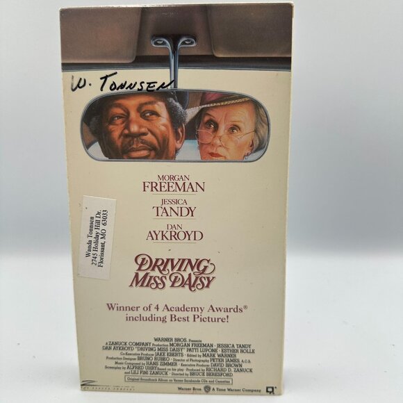 This 1989 VHS of "Driving Miss Daisy" features Morgan Freeman and Jessica Tandy in a Pulitzer Prize-winning story of friendship. Classic drama with four Academy Award wins.