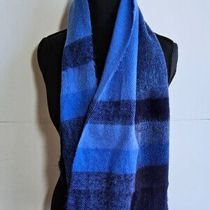 Unlined black stitched gloves (guessing small) and 12 X 52" light/dark blue winter neck scarf. Gloves like new. Scarf very good.