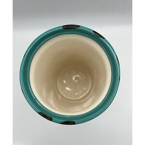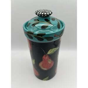 Droll Designs Hand Painted Pear Fruit Art Pottery Large Lidded Canister. Measures approx. 12” tall and 5.25” in diameter. Good condition, no chips or cracks in the ceramic. There are some paint chips around the edge of the lid (see photos).