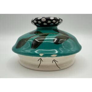 Droll Designs Hand Painted Pear Fruit Art Pottery Large 12” Lidded Canister