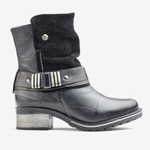 Dromedaris Kikka Mixed Material Leather Chunky Heel Round Toe Ankle Boots