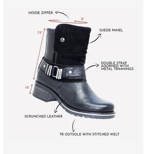 This style is enhanced with a decorative strap and trimmings that make heads turn. A very stylish last with generous toe room gives it the perfect fit. The outsole is made of Thermo-plastic rubber, a special rubber mixture that is soft and gummy. It has been painted and brushed to give it the leather stack finish. It also includes a leather welt with heavy stitch, and has a rocker bottom for enhanced walking motion and less strain on the back.