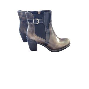 Dromedaris Metallic Ankle Boots Round Toes Women Size 38 Zip Block Heel Chelsea