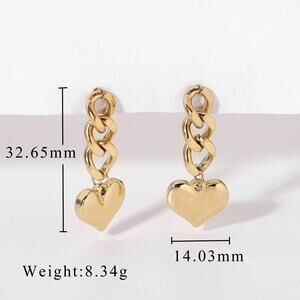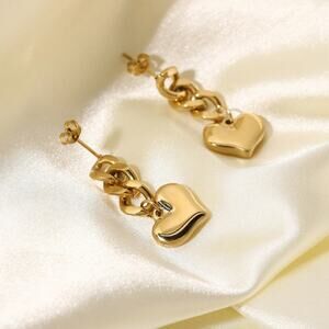 Drop Chain Heart Earrings 18K Gold Plated Stainless Steel