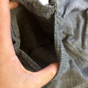 Looks like some wear on one of the legs (please see photos) but hard to see since pants are so billowy!