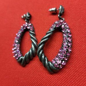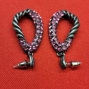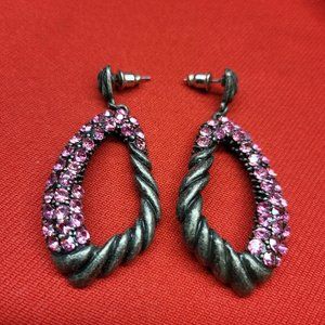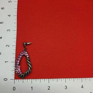 Drop Dangle Earring Pewter Silver with Pink Rhinestones. Pre-owned in great condition.
