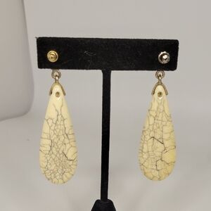 Gold Tone and Crackled Cream Color Drop Earrings ▪︎ Approx 2.75" Long ▪︎ No Markings Excellent Condition