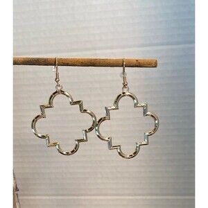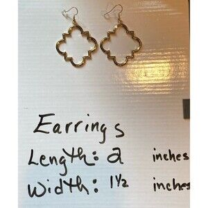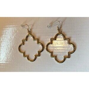 Drop Earrings Gold Tone Quatrefoil Look Open Frame Lightweight Versatile Chic