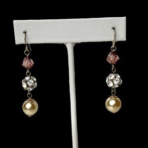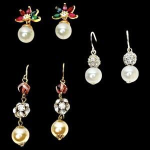 Drop Earrings Lot 3 Dangle Rhinestones Faux Pearl Colored Stones Pierced Sparkly