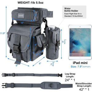 BIG CAPACITY: 8.3"W x 11.9"H x 5’’L, 8 pockets, this thigh bag is big enough for your digital camera, Mini Pad, cell phone, wallet, power bank, keys and other small gadgets. An extra bag for water bottle attached.