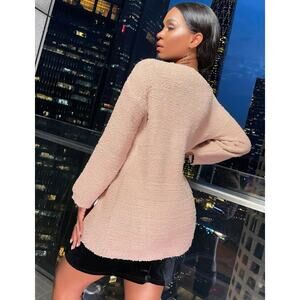 Drop Shoulder Open Front Tan long sleeved Cardigan size Small. 100% Acrylic with slight stretch. Khaki color. Comfy and stretchy.