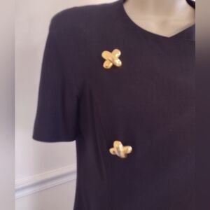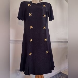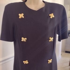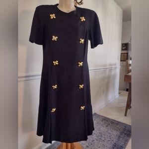 Drop Waist 1980's Black Double Breasted Gold Buttons Saks 5th Ave Size 6