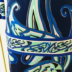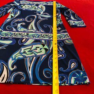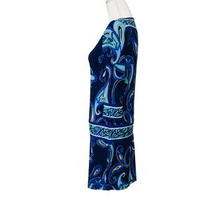 Drop Waist Dress Blue White Green Swirls ¾ Sleeves Stretch Ali Ro Women’s Size 2