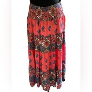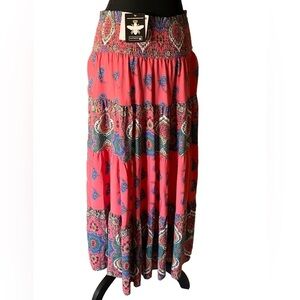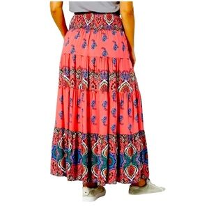 Drop Waist Low Rise Print Maxi Skirt Pull-On Tiered Plisse Maxi Skirt NWT S…