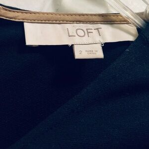 LOFT Black Drop Waist Dress with Black-Tan Striped Pleats