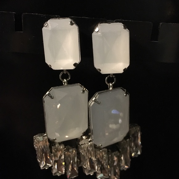 Cloudy white gem earrings with smaller gens underneath. Light material