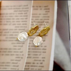 Genuine Natural Freshwater Pearl Dangle Earrings Handmade Baroque White Pearls Earring Irregular Bridal Drop Earring