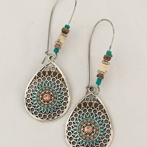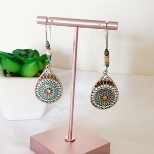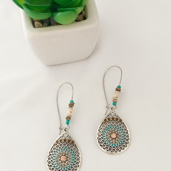 Colorful Boho Water Drop Earrings. Brown, silver and Turquoise colors make the perfect combination for this beautiful Boho style earrings. Light weighted, perfect for any occasion!