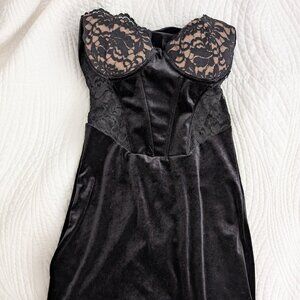 Dropping Hints Velvet Lace Bustier Mini Dress