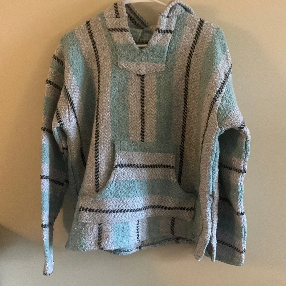Drug Rug Sweatshirt, Teal and Grey, Size M