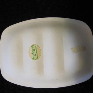 laminated Drulane green & white soap dish, 5 3/4" by 4 1/4",very good condition, made in West Virginia