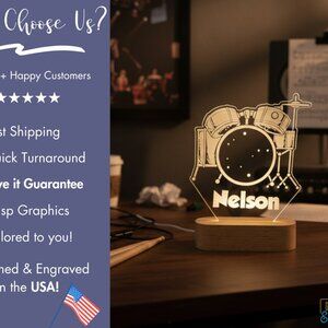 Drum Set Custom Name Light | Personalized LED Decor | Baby & Toddler Gift