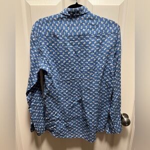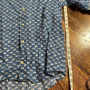 Drumohr | Button Down Blue Linen Men's Shirt Scooter Print Sz S