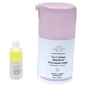 Introducing Drunk Elephant T.L.C. Sukari Babyfacial paired with Virgin Marula Luxury Facial Oil, in a 1.69 oz size. This skincare set combines a powerful resurfacing facial with nourishing marula oil for a balanced treatment. Items are brand new.