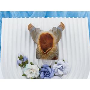 Druzy Agate Mermaid Tail Crystal Carving Brown Yellow