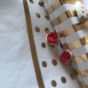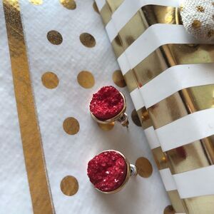 Druzy Red on gold over brass flat back setting 12 mm hypo allergenic, nickel and lead free gold over brass flat back button setting new Fab glimmer sparkles druzy natural stone NEW Ret $22 also avail ...brown, teal blue n gold Druzy’s avail